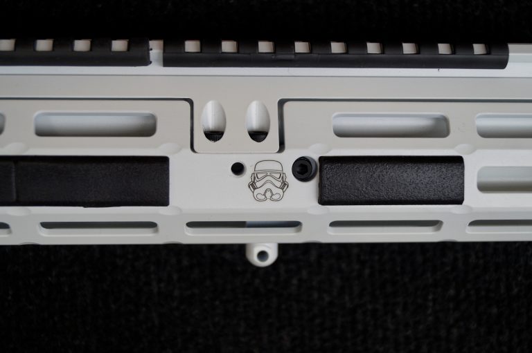 Diese Mündunsgbremse ist aus dem vollen Material gefräst, daher auch relativ schwer. Das Rechteck Cover ist aus Aluminium.